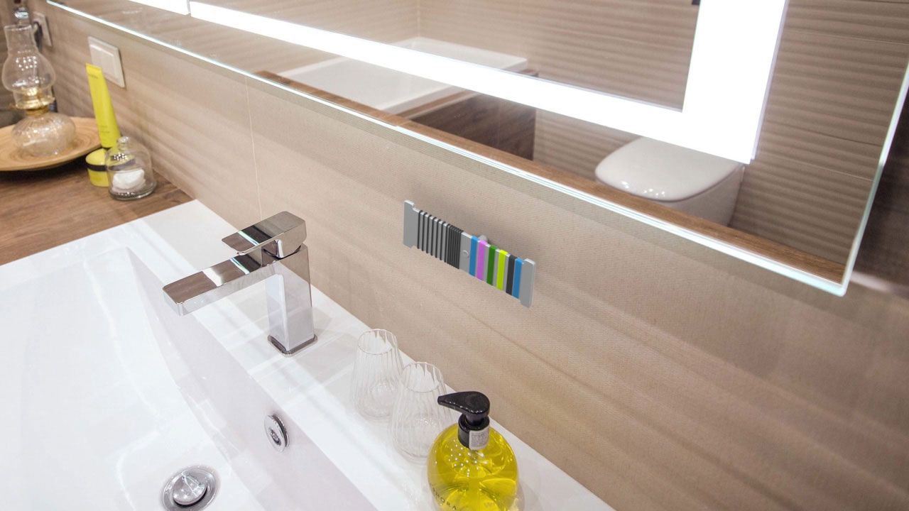 The Pony Tailor is mounted onto a wall next to a mirror, or wherever you might be getting ready. It can even be mounted in your car. This designated spot of your choosing means the Pony Tailor won’t get lost or scattered right along with the hair ties! To use, simply stretch a hair elastic over the left or right side of the device and let go. No matter how many you add, they won’t fall off. You’ll also be able to grab any hair elastic you like and pull it off with ease, without it getting tangled in the others! Various colors and sizes are possible.